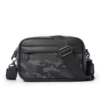 SABADO Tas Bahu Pria, Tas Selempang Kulit PU Pola Kamuflase Hitam Abu-abu Luar Ruangan